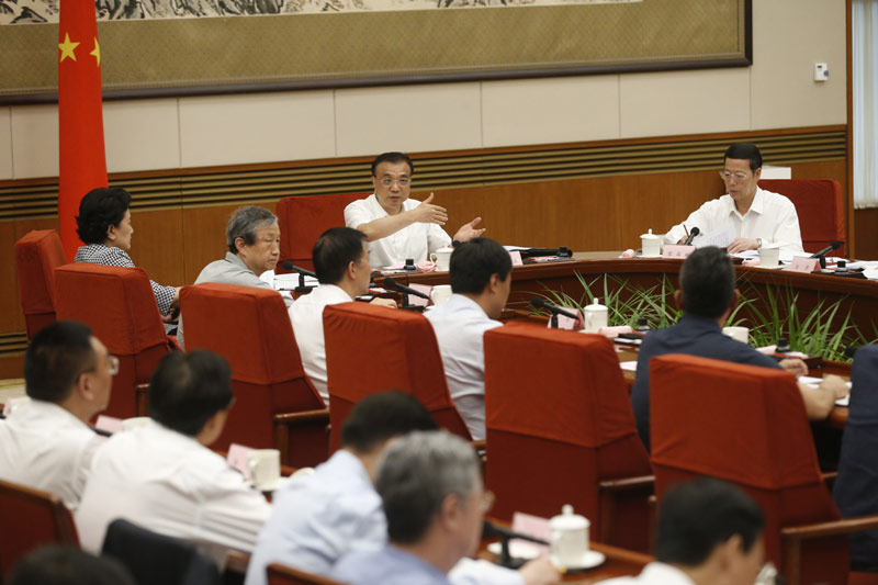 7月11日,中共中央政治局常委、国务院总理李克强在北京主持召开座谈会,就科学研判经济形势、做好经济工作听取专家和企业家的看法建议。新华社记者 李涛 摄