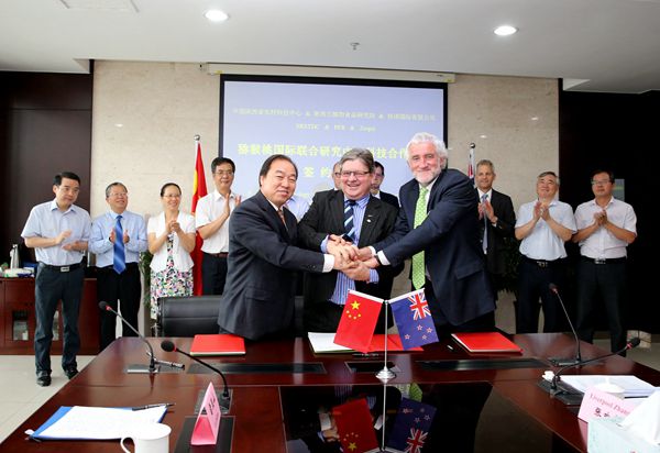 为了推进猕猴桃国际合作研究与产业发展,共同打造互利共赢合作平台。9月5日上午,陕西省农村技术开发中心与新西兰皇家植物与食品研究院有限公司、新西兰佳沛国际有限公司,在西安举行科技合作签约仪式。两国三方就猕猴桃栽培品种评价、土壤改良与营养管理、CPPU依赖性消除、果品差异性解决方案、果品面源污染治理、授粉技术等6个方面内容签署了合作协议。