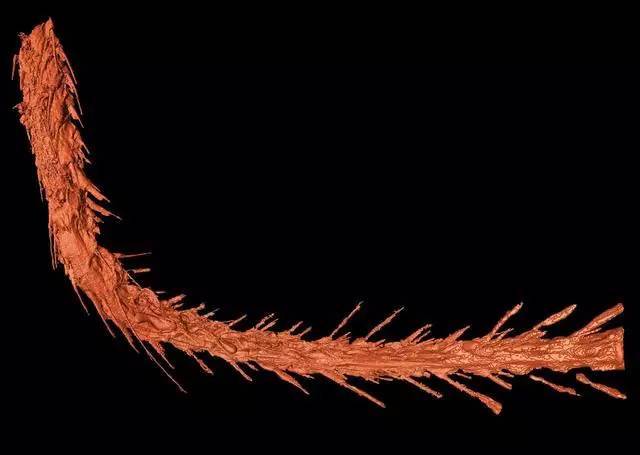 琥珀中恐龙尾巴的微CT扫描图像。图片来源:Lida Xing