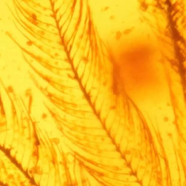 恐龙尾巴羽毛上可见许多羽小枝。图片来源:Royal Saskatchewan Museum