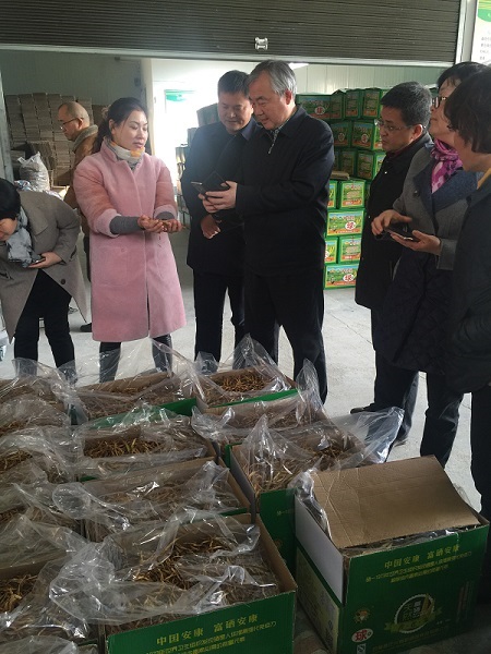 林厅长一行先后来到陕西嘉晟农业科技有限公司、陕西乾佑禾农业科技有限公司、石泉县正兴有机绿色食品有限公司进行了实地调研。在陕西嘉晟农业科技有限公司,林厅长一行听取了企业负责人的情况介绍,进行了座谈交流,并参观了公司的新产品展示区,林厅长要求企业要加强和大专院校、科研院所的科技合作,借助国家“三区”科技人才选派的机遇,引进科技人才,为企业搞好产品开发和技术服务。在陕西乾佑禾农业科技有限公司,林厅长对公司引进陕西师范大学生命科学院专利技术进行白芨种苗繁育的做法给予了充分的肯定。最后在石泉县正兴有机绿色食品有限公司,林厅长一行现场参观了黄花菜产品包装,详细了解了公司生产经营情况,对企业依靠科技发展富硒黄花菜产业,带动农民脱贫致富给予了高度评价。