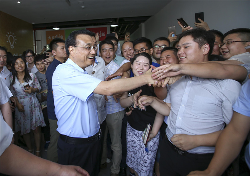 【李克强为职业农民双创鼓劲儿】“总理,我们将来想创业!”李克强10日来到陕西杨凌职业农民创业创新园,正在农忙的农民纷纷围拢上前,争相向总理介绍创业计划。该园区招引全国80多位农民学习实训,为其返乡创业传授经验。总理为他们鼓劲儿:“现在要先脚踏实地把技术学到手,未来祝你们创业成功。”