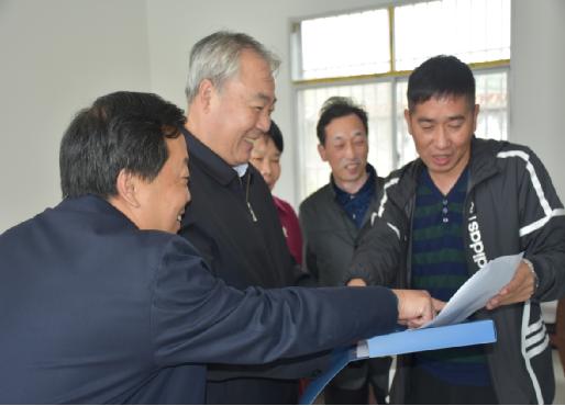 在汉滨区惠盛现代农业示范园林黎明副厅长饶有兴趣地查看园区帮扶贫困户发展产业情况