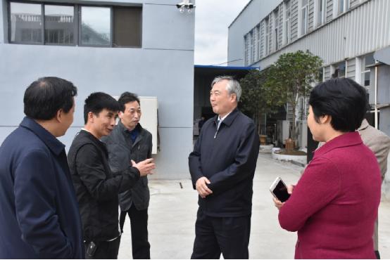 林黎明副厅长听取火博体育入口悠源食品有限公司总经理鲍宏明介绍公司技术创新、产品研发情况