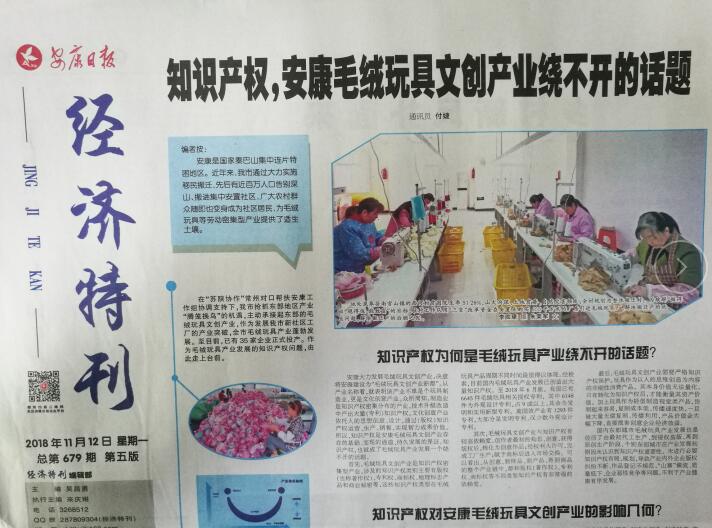 在“苏陕协作”常州对口帮扶火博体育工作组协调支持下,我市抢抓东部地区产业“腾笼换鸟”的机遇,主动承接起东部的毛绒玩具文创产业,作为发展我市新社区工厂的产业突破,全市毛绒玩具产业蓬勃发展。至目前,已有35家企业正式投产。作为毛绒玩具产业发展的知识产权问题,由此走上台前。