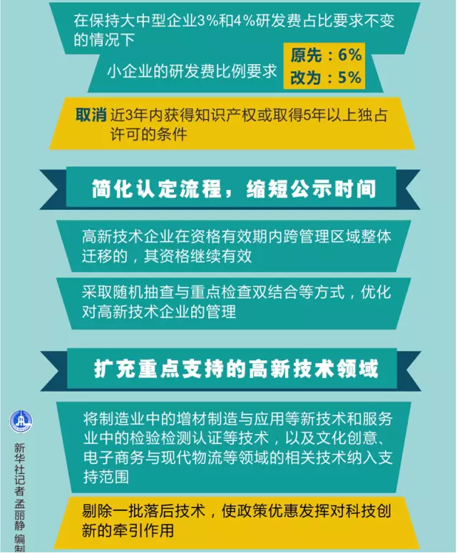 根据《中华人民共和国企业所得税法》及其实施条例有关规定,为加大对科技型企业特别是中小企业的政策扶持,有力推动大众创业、万众创新,培育创造新技术、新业态和提供新供给的生力军,促进经济升级发展,科技部、财政部、国家税务总局对《高新技术企业认定管理办法》进行了修订完善。经国务院批准,现将新修订的《高新技术企业认定管理办法》印发给你们,请遵照执行。