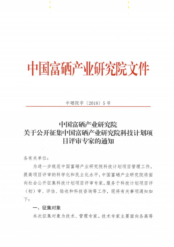 关于公开征集中国富硒产业研究院科技计划项目评审专家的通知