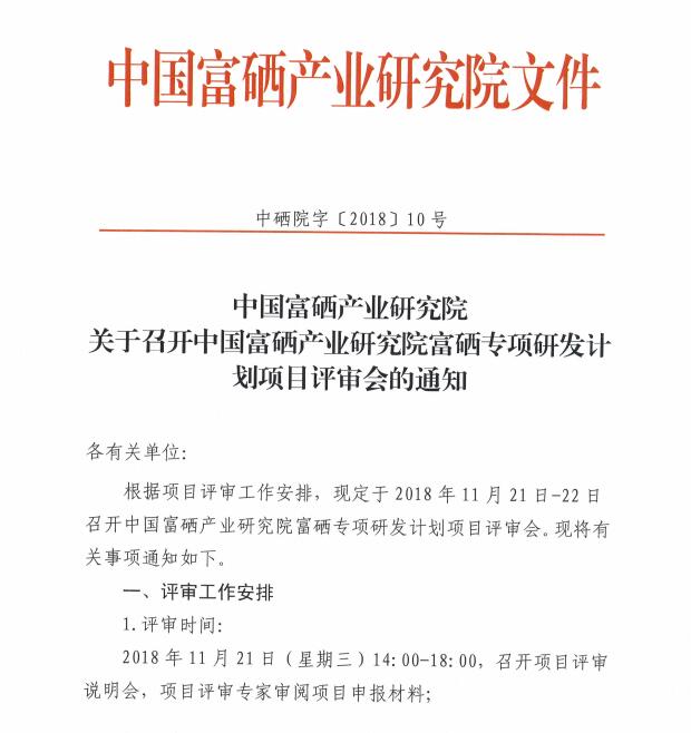 中硒院字〔2018〕10号关于召开中国富硒产业研究院富硒专项研发计划项目评审会的通知-火博体育入口