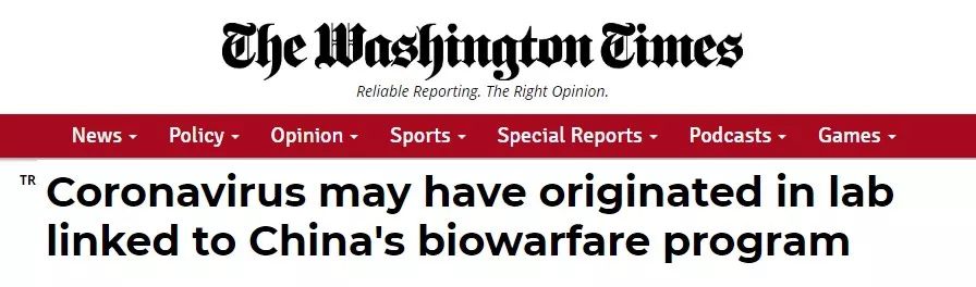 最早炮制并发布“新冠病毒是中国研发的秘密生化武器”一说的《华盛顿时报》(Washington Times,非《华盛顿邮报》Washington Post)具有邪教背景。《华盛顿时报》1982年由韩国邪教“统一教”(The Unification Church)教主文鲜明(Moon Sun Myung)创建,经过二十多年的演变,这份报纸已成了美、日、韩极右势力的宣传机器,同时也是“中国威胁论”“台独”的宣传旗手。