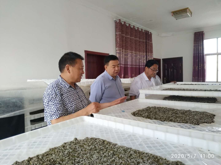 5月7日,火博体育入口火博体育入口调研员孙伟庆在市蚕桑中心主任张京国等专家的陪同下深入火博体育汉滨区刘营村人工饲料养蚕示范点调研粉体人工饲料小蚕共育情况。