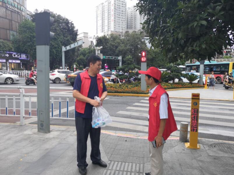 8月22日,火博体育入口组织干部职工参加文明交通劝导活动。