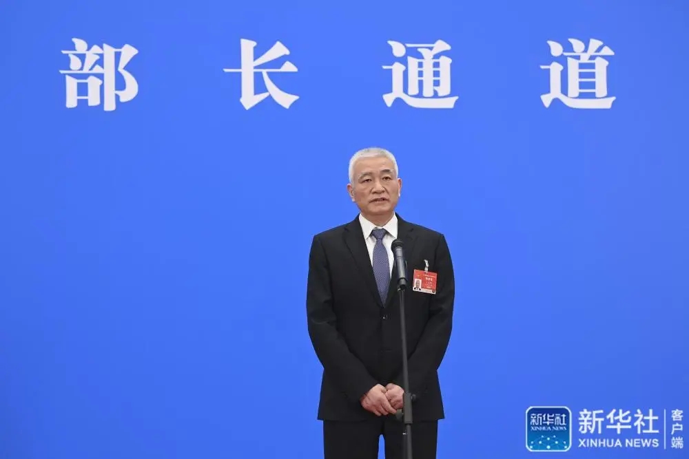 3月8日,第十三届全国人民代表大会第四次会议举行第二场“部长通道”采访活动。这是科学技术部部长王志刚通过网络视频方式接受采访。新华社记者 金良快 摄