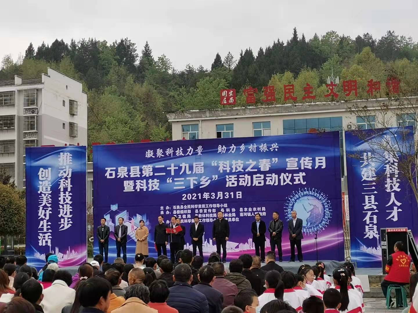 3月31日,石泉县第二十九届“科技之春”宣传月暨科技“三下乡”活动启动仪式在喜河镇燕山广场盛大开幕,本次活动由县科协主办,县教体科技局及全民科学素质工作领导小组成员单位协办。县委常委统战部长李标、市科协副主席杨高及各单位相关领导参加了此次活动。