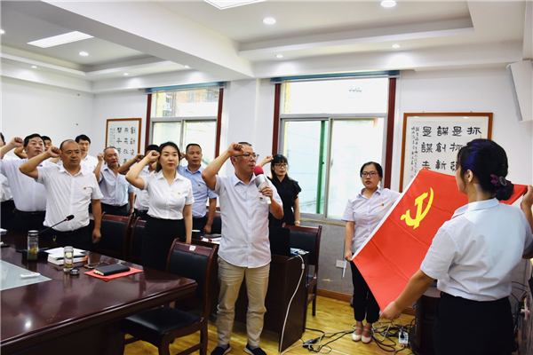 现场重温了入党誓词,党员面向鲜红的党旗,高举右手,庄严宣誓:“我志愿加入中国共产党……”铿锵有力的誓词,震撼着在场的每一位党员,进一步增强大家的使命感、荣誉感和责任感,更加坚定身为共产党员矢志不渝的初心和担当使命的信念。