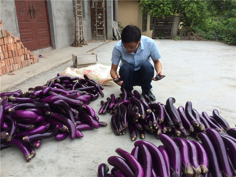 村里紫长茄子滞销,李增安正在拍照在网上发布帮助销售