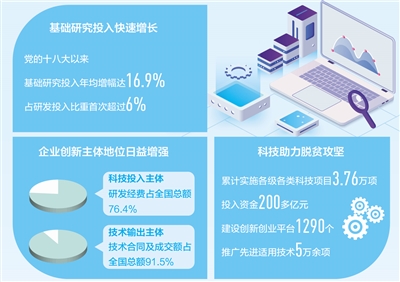 基础研究占研发投入比重超6%,每万名就业人员中有研发人员62人,高新技术企业总营业收入51.3万亿元,选派28.98万名科技特派员……在国新办27日举行的新闻发布会上,科技部有关负责人介绍了为全面建成小康社会提供强大科技支撑的有关情况。