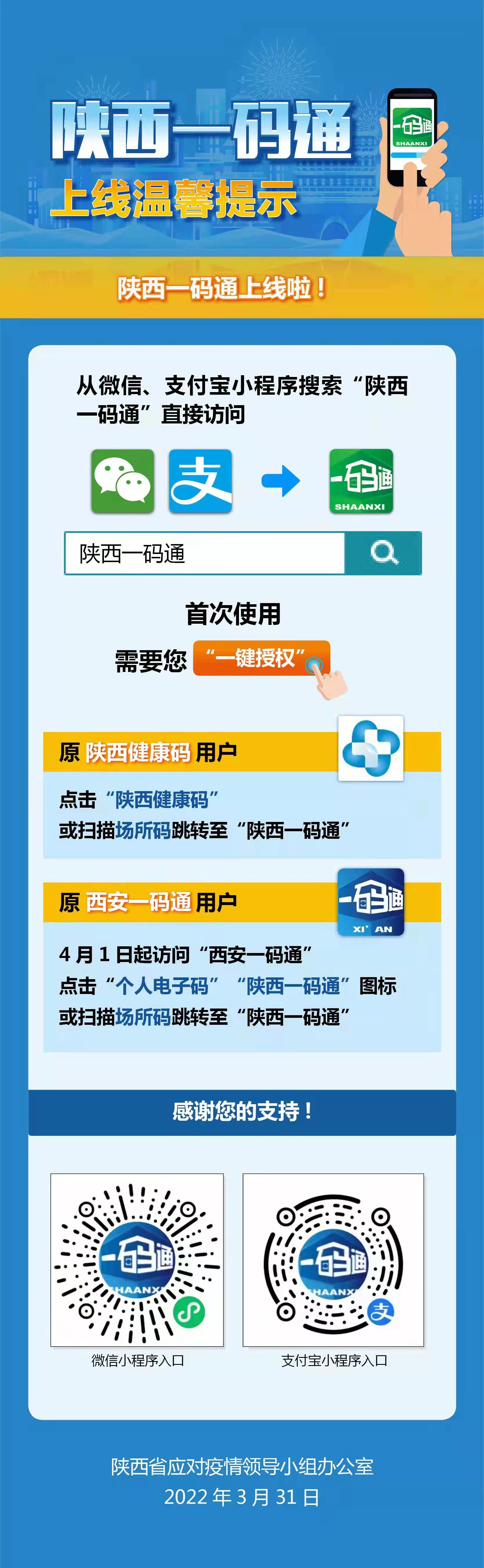 陕西一码通上线温馨提示