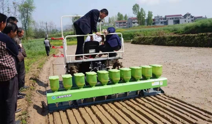 目前,水稻种植存在农村劳动力大量转移和老龄化问题, 传统面朝黄土背朝天、弯腰曲背的手工插秧方式, 已难以满足水稻种植和生产水平的提高。为了确保粮食安全,他率先提出在秦巴山区单季稻区创新种植方式,改水稻传统手工育秧、插秧种稻为直播种植,使水稻生产省力节本(育秧、拔秧、运秧和插秧等工序)、高产高效,能大幅度减轻劳动强度,缓解劳力季节性紧张的矛盾,对种粮大户实现水稻规模化生产有着重要的意义。