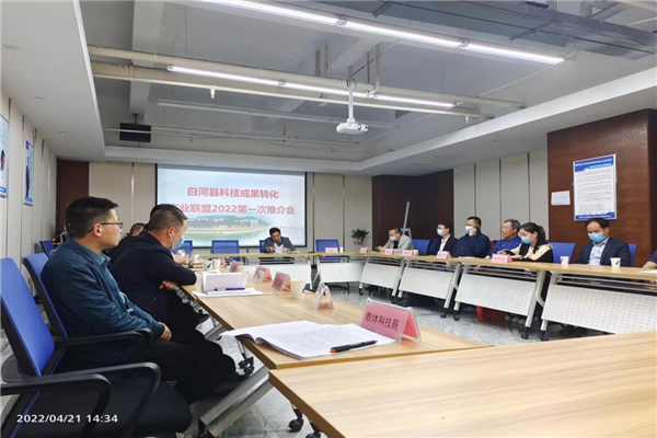 4月21日下午,白河县科技成果转化产业联盟在县电商中心举行推介活动。市科技统筹资源中心主任马鑫、市农科院薯类作物副所长段龙飞应邀参加活动。县经贸局、县人社局、县农业农村局、县林业局、县招商服务中心、团县委等部门,县内木瓜、茶叶、魔芋、核桃等企业负责人共30余人参加活动。