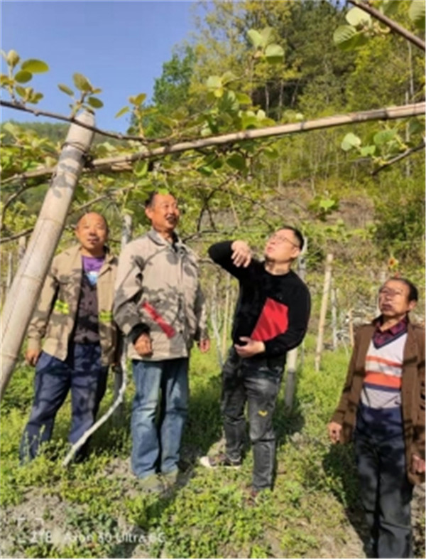 徐波在汉阴县双河口镇兴春村指导种植户对猕猴桃疏花疏果