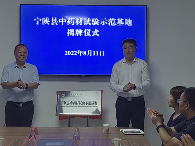 8月11日,宁陕县中药材试验示范基地在城关镇旱坝村药菌研发中心揭牌成立。西北农林科技大学生命科学学院党委书记刘卫军、推广处副处长韩虎群以及示范基地专家团队出席。县政府副县长姚念伟致辞并为中药材试验示范基地揭牌。县教体科技局、财政局、农水局、市场监管局相关负责人以及部分企业代表参加揭牌仪式。
