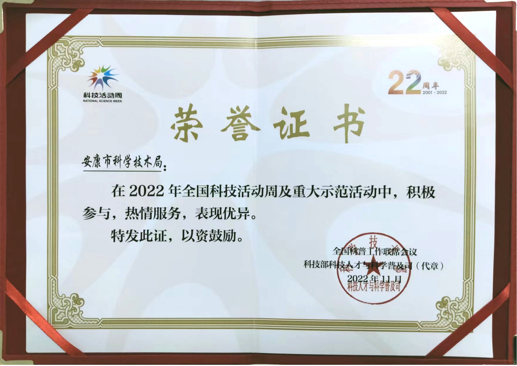 日前,根据全国科技活动周组委会办公室通报,火博体育入口火博体育、火博体育入口高新区科技资源统筹中心荣获“全国科技活动周及重大示范活动”先进集体称号,火博体育入口火博体育孟辉、火博体育入口高新区科技资源统筹中心卢升艳两位同志被表彰为优秀个人。