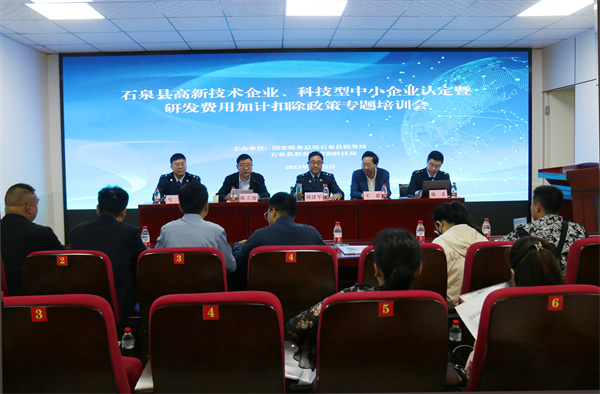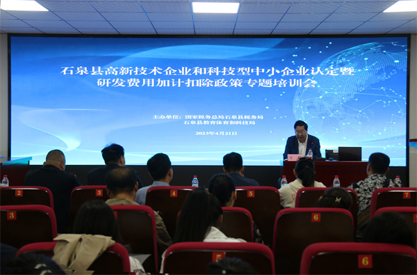 4月21日,石泉县教体科技局联合国家税务总局石泉县税务局组织召开了石泉县高新技术企业、科技型中小企业认定暨研发费用加计扣除政策专题培训会,全县高新技术企业、科技型中小企业及存在研发投入有加计扣除需求的企业人员共40余人参加了培训。
