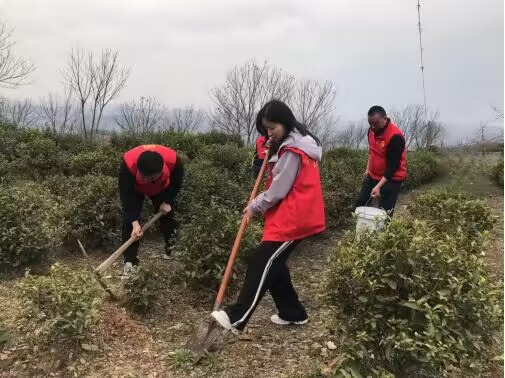 随后,刘安琴一行在茶园基地开展义务植树活动,对茶树进行了修剪、除草、松土、浇水等管护,全体人员分工协作、相互配合,高质量完成了全民义务植树和学雷锋志愿服务活动,为美丽乡村建设添绿添彩。