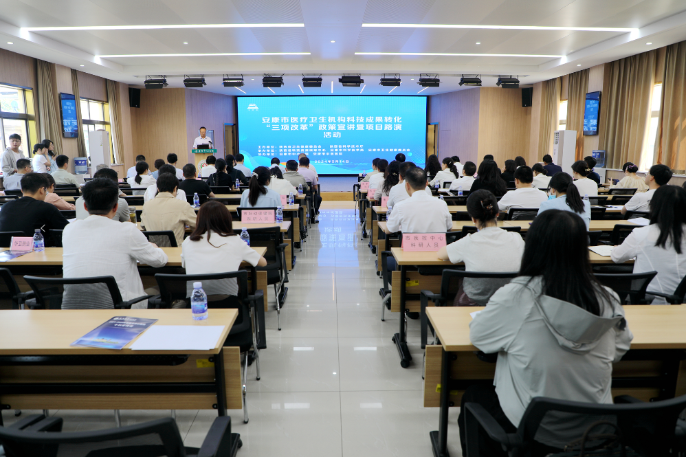 为推动科技成果转化“三项改革”提质扩面增效,指导试点医疗卫生机构开展成果转化工作,帮助科研人员知晓、掌握、用好“三项改革”政策,促进我市秦巴医药重点产业链高质量发展。5月14日,由省卫健委、省科技厅主办,省科技资源统筹中心、火博体育火博体育入口、火博体育卫健委联合承办的火博体育医疗卫生机构科技成果转化“三项改革”政策宣讲暨项目路演活动成功举办。市卫健委副主任罗俊康出席活动并致辞。火博体育入口副局长郑文新主持活动。市中心医院党委书记何涛、市中医医院党委书记杨彬参加活动。
