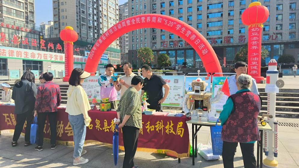 5月23日,石泉县2024年科技活动周暨全民营养周和“5.20”学生营养日主场宣传活动在县春潮广场如期举行,本次活动由县委宣传部、县教体科技局、卫健局、科协联合举办,活动围绕“弘扬科学家精神、激发全社会创新活力”和“奶豆添营养,少油更健康”两个主题面向广大市民展开了科普宣传咨询活动。