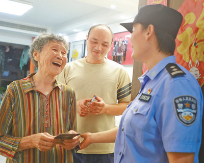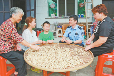 浙江诸暨市公安局枫桥派出所社区民警在村民家走访。 |