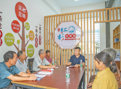 江苏宿迁市宿豫区大兴镇周夏村创建“红杉议事吧”,通过一站式接待、一条龙办理、一条心服务、一揽子解决模式,完善乡村治理。 |