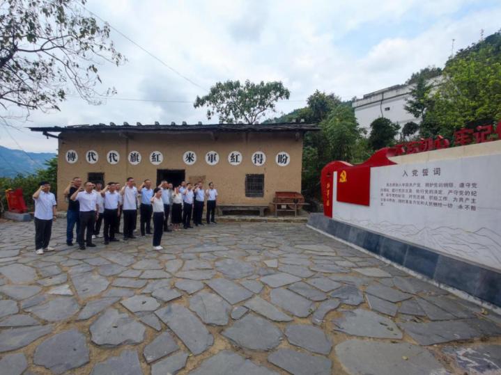 在岚皋县堰门镇,全体党员干部详细参观了红军道展馆,认真聆听工作人员讲解中国工农红军第三十军第一纵队卢楚衡、李还山、许勋安等英烈志士的光辉革命事迹,大家深受感动,全体党员干部重温了入党誓词。