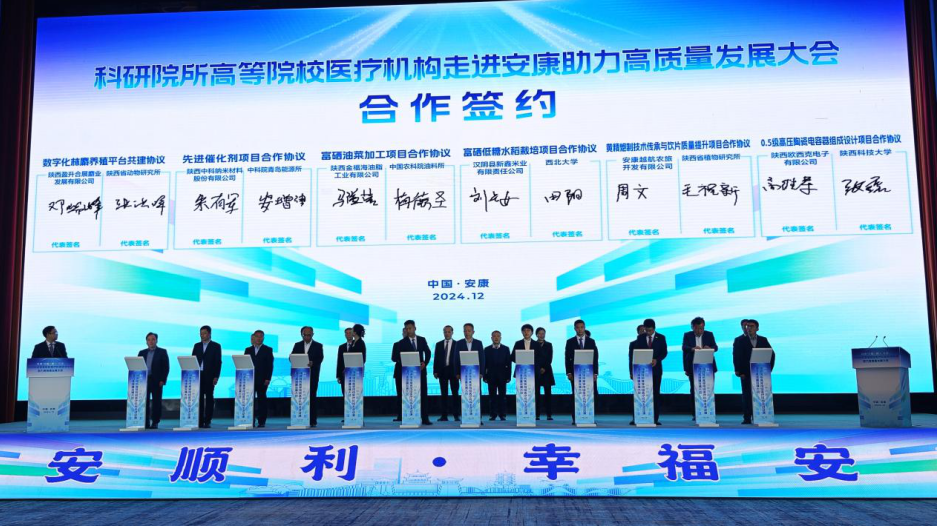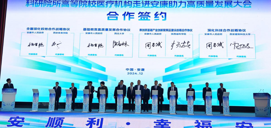 会上,市长王浩与省科学院院长张首刚携手为陕西省科学院科技成果转移转化火博体育入口工作站揭牌。副市长、市委秘书长周孝斌与省科学院副院长杨青春签署了秦创原富硒产业创新聚集区建设战略合作协议。该协议旨在通过产业技术攻关、创新平台建设、科技成果转移以及人才交流等多方面的合作,进一步推动秦创原富硒产业创新聚集区建设,实现富硒产业的高质量发展。