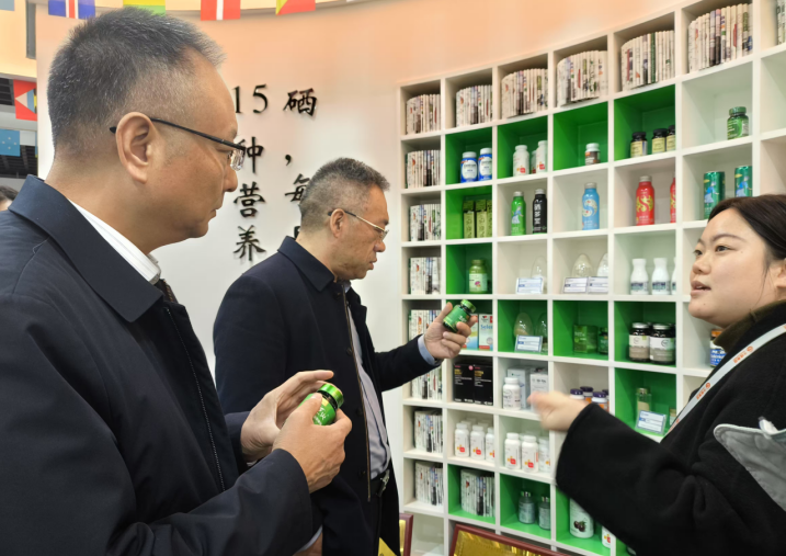 在恩施德源硒材料工程科技有限公司、湖北硒粮科技集团有限公司、恩施硒圣植物科技有限公司、中硒集团股份有限公司等科技型企业,吴世珍一行进行了实地观摩。企业负责人详细介绍了硒产品开发、市场推广与销售情况。吴世珍认真倾听,并不时提问交流,深入了解企业在硒产品深度开发和全产业链推进中的成功经验。