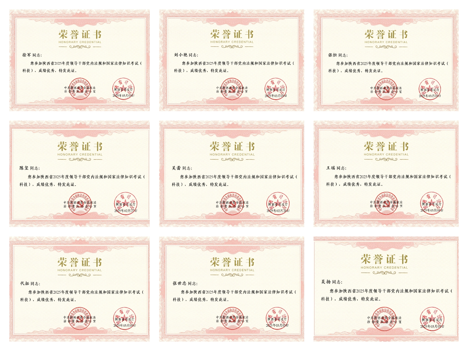 本次考试通过答题形式检验干部职工学法用法水平,考试内容涉及《中国共产党章程》《优化营商环境条例》《中华人民共和国科学技术进步法》《陕西省科学技术进步条例》等知识点,全体干部通过认真自学,均取得95分以上的好成绩。