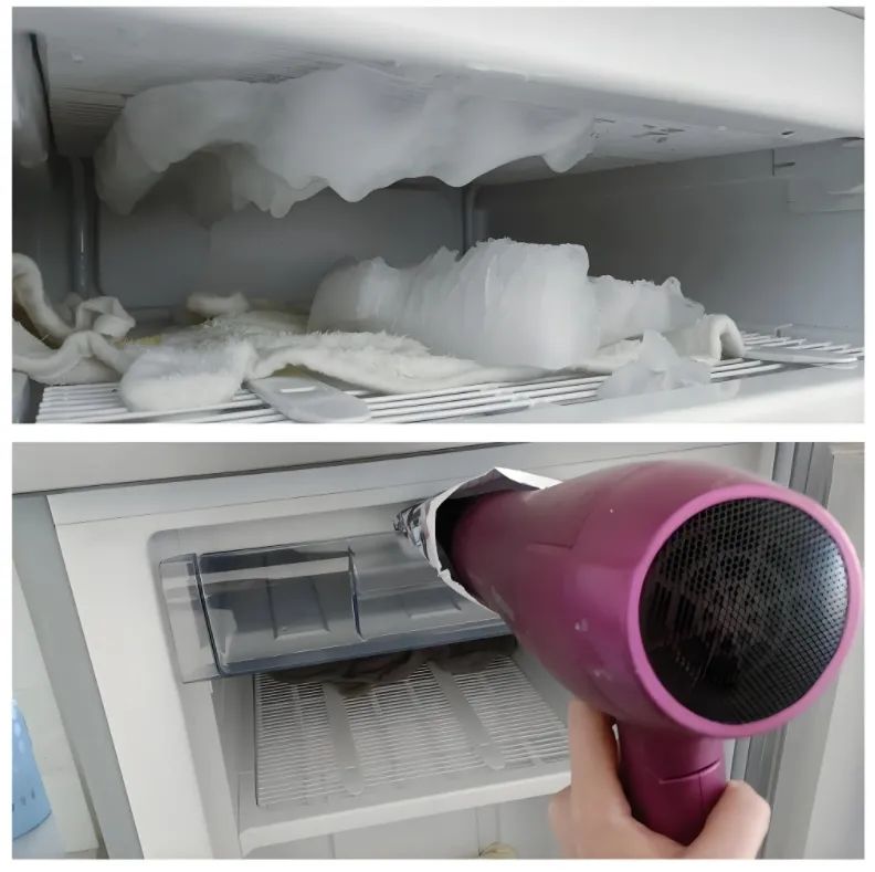 买冰箱的时候,都会附送一个塑料的小铲子,它没有那么尖锐,不会戳破冰箱箱体,用它来给冰箱除霜是比较安全的。