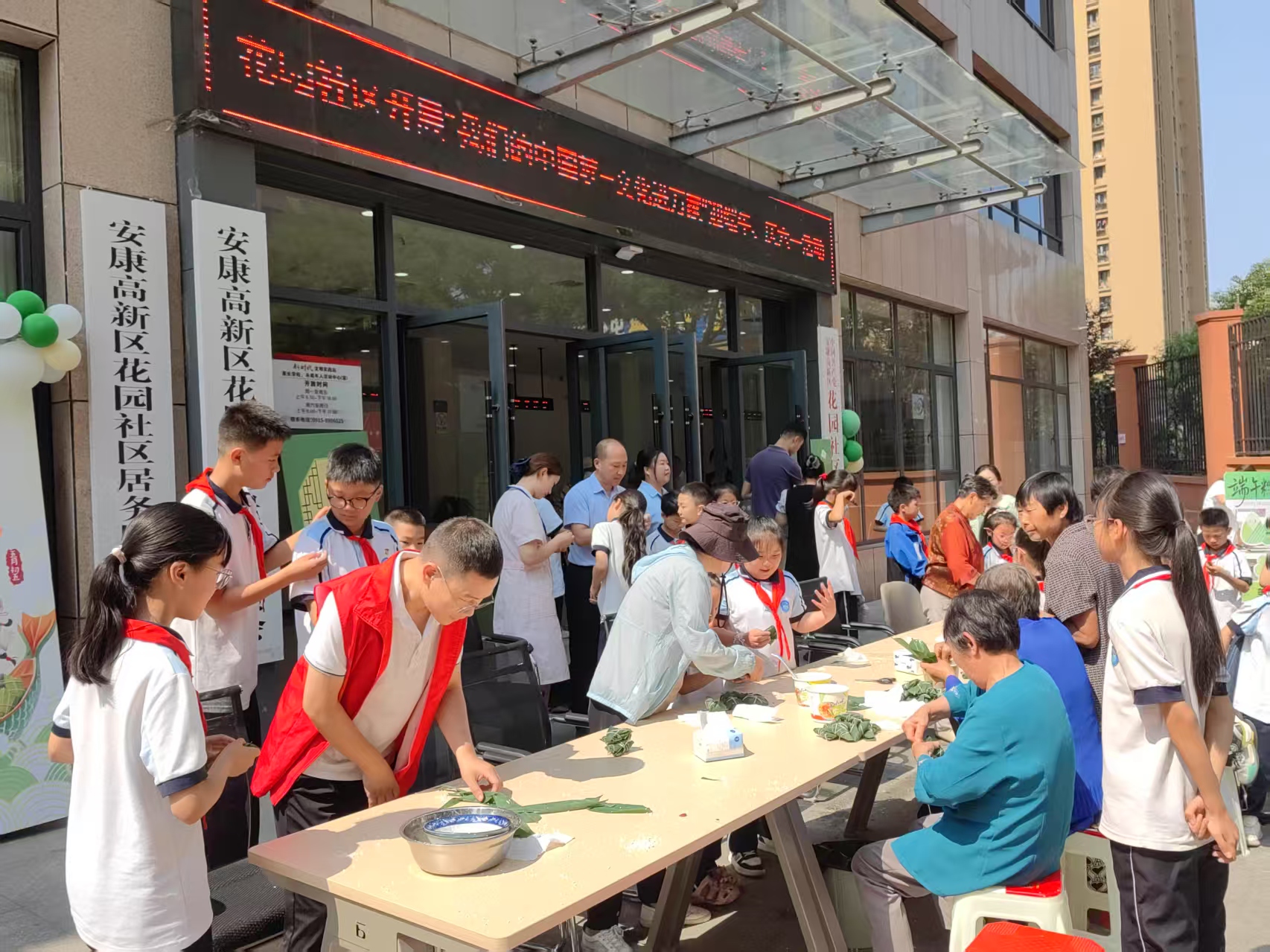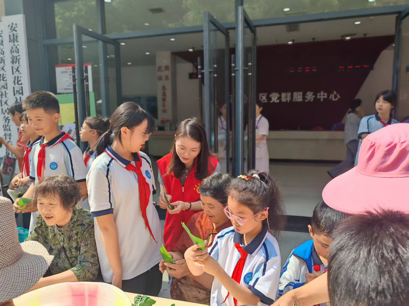 活动现场,包粽子区域围满了热情高涨的居民。老人与和孩子们围坐在一起,捋粽叶、填糯米、放馅料、扎线绳,老人们耐心地向孩子们传授包粽子的技巧,随着手指上下翻飞,一会功夫形态各异的粽子便摆满了桌面,有的小巧可爱,有的紧实饱满,粽叶的清香与现场的欢声笑语融为一体,传递着浓浓的节日温情。