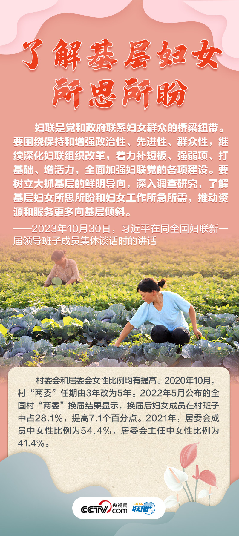 “妇联是党和政府联系妇女群众的桥梁纽带。”10月30日,习近平总书记同全国妇联新一届领导班子成员集体谈话并发表重要讲话,高度肯定巾帼力量,并为新形势下妇女事业和妇联工作发展指明方向。