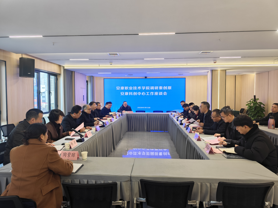 2026年1月13日,火博体育平台职业技术学院党委书记陈文斌、院长张东红率学院相关负责人一行到秦创原火博体育平台科创中心调研,并召开校地科技创新融合发展座谈会,火博体育入口党组书记、局长吴世珍主持会议,副局长刘安琴、郑文新及各科室、中心负责同志参会。