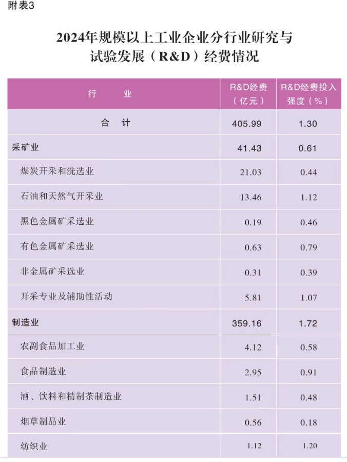 研究与试验发展(R&D)经费的统计范围为全社会有研究与试验发展(R&D)活动的企事业单位,具体包括政府属研究机构、高等学校以及研究与试验发展(R&D)活动相对密集行业(包括农、林、牧、渔业,采矿业,制造业,电力、热力、燃气及水生产和供应业,建筑业,交通运输、仓储和邮政业,信息传输、软件和信息技术服务业,金融业,租赁和商务服务业,科学研究和技术服务业,水利、环境和公共设施管理业,卫生和社会工作,文化、体育和娱乐业等)的企事业单位等。